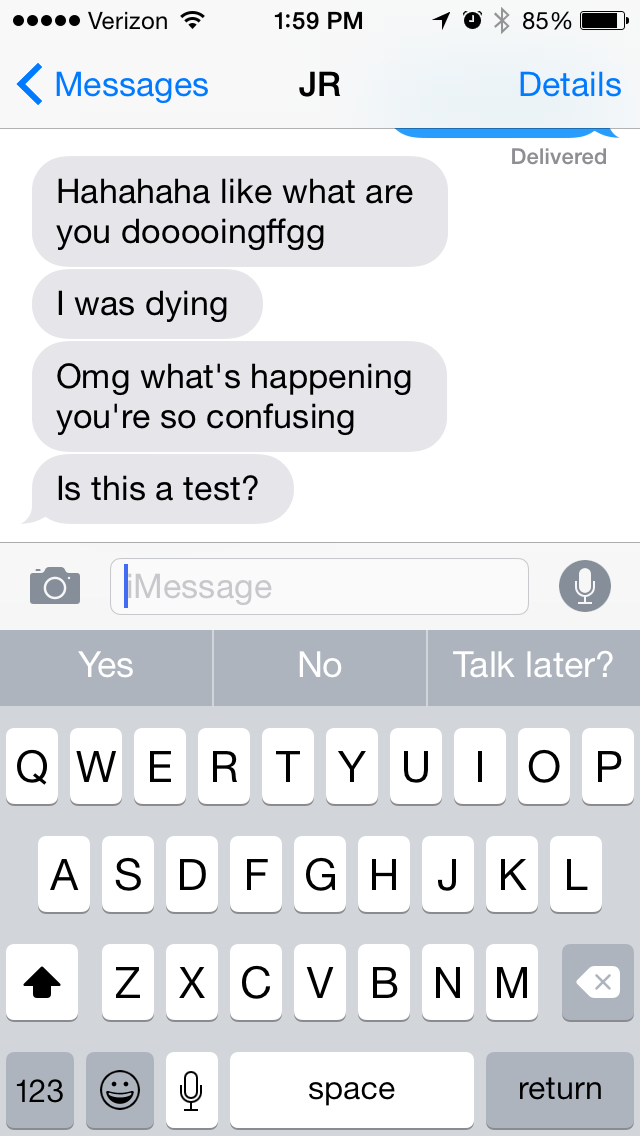 To build on this piece, I would like to tailor the messages/tweets to be focused around a specific topic. For example, only having messages that are about relationship problems. I think this could flow nicely as on ongoing poem or story in the twitter feed, and the content could be continuously added to (since we are continuously using our phones). I also am curious about incorporating the use of hash tags to help gain followers and react to twitter topics.