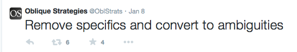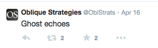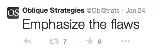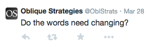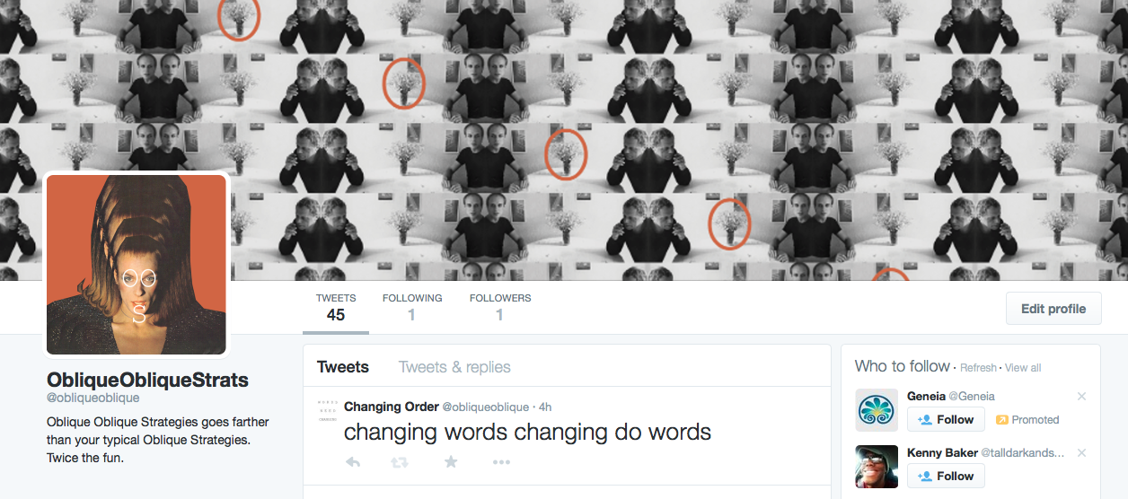 After looking through the archive of Oblique Strategies on Twitter, some of these strategies even motivated me to do this exercise by what they were saying.